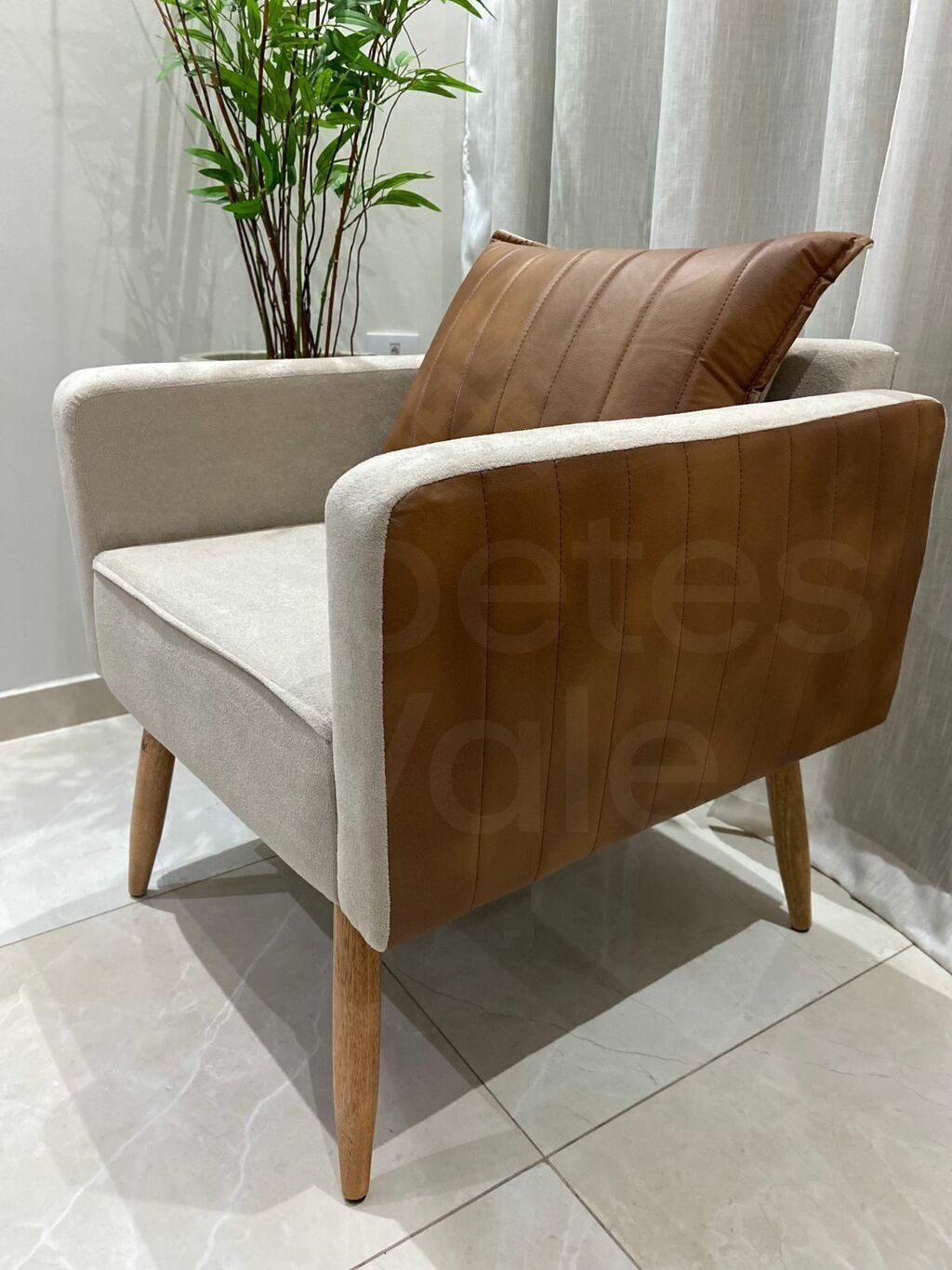 Pés Elegantes: Os pés em eucalipto envernizado não só garantem estabilidade, mas também complementam o estilo da poltrona.